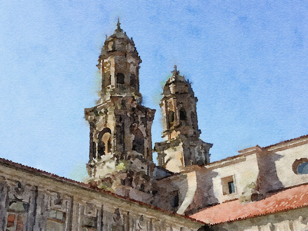 Heute habe ich zum ersten Mal, seit ich auf dem Küstenweg unterwegs bin, verschlafen :-). Die gestrige, lange Tagesetappe, das viele Essen und der Wein am Abend haben mir einen tiefen Schlaf geschenkt. Als ich aufwachte – es war noch stockdunkel – waren meine Pilgerbrüder und -schwestern gerade im Begriff, die Herberge zu verlassen. Allerdings hatten sie das versprochene Frühstück nicht bekommen; in der Café-Bar brannte noch kein Licht. Das war an, nachdem ich mein Zeug zusammengepackt hatte, und so habe ich erst einmal mit grosser Freude gefrühstückt. Es gab eigentlich auch keinen Grund für Stress: Mein Etappenziel war das Kloster Sobrado dos Monxes. Für Pilger gibt es dort 120 Betten und so viele sind zurzeit ganz sicher nicht unterwegs.